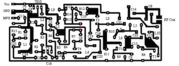 | Pozicio szám | Érték | | R1, R4, R14, R15 | 10kOhm | | R2, R3 | 22kOhm | | R5, R13 | 3,9kOhm | | R6, R11 | 680Ohm | | R7 | 150Ohm | | R8, R12 | 100Ohm | | R9 | 68Ohm | | R10 | 6,8kOhm | | C1 | 4,7 pF | | C2, C3, C4, C5, C7, C11, C12 | 100nF | | C6, C9, C10 | 10nF | | C8, C14 | 60pF Trimmer | | C13 | 82pF | | C15 | 27pF | | C16 | 22pF | | C17 | 10uF / 25V | | C18 | 33pF | | C19 | 18pF | | C20 | 12pF | | C21, C22, C23, C24 | 40pF Trimmer | | C25 | 5pF | | L1 | 5 menet 6mm átmérőre 1mm Cu -ból | | L2, L3, L5, L7, L9 | 5 menet 6mm átmérőre 0.6mm Cu -ból | | L4, L6, L8 | 1,5 menet 6mm átmérőre 1mm CuAg -ból | | L10 | 8 menet 5mm átmérőre 1mm CuAg -ból | | D1 | BB405 v. BB102 | | Q1 | 2N3866 | | Q2, Q4 | 2N2219 | | Q3 | BF115 | | Q5 | 2N3553 | | U1 | 7809 Regulator |